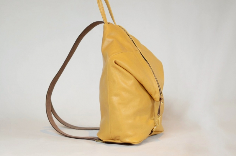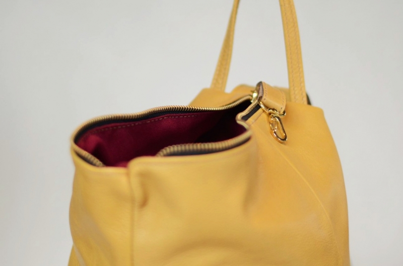 Con una gran capacidad interna cuando se despliega, y un moderno diseño que desde la simpleza se ve muy interesante, simple, y divertida, totalmente elaborada en cuero legitimo argentino, forrada completamente en telas de tapicería, cierre superior de metal, manijas forradas con hebillas para regular las correas, broche mosquetón para cambiar las posiciones de uso, y todos los herrajes en metal dorado o empavonado.